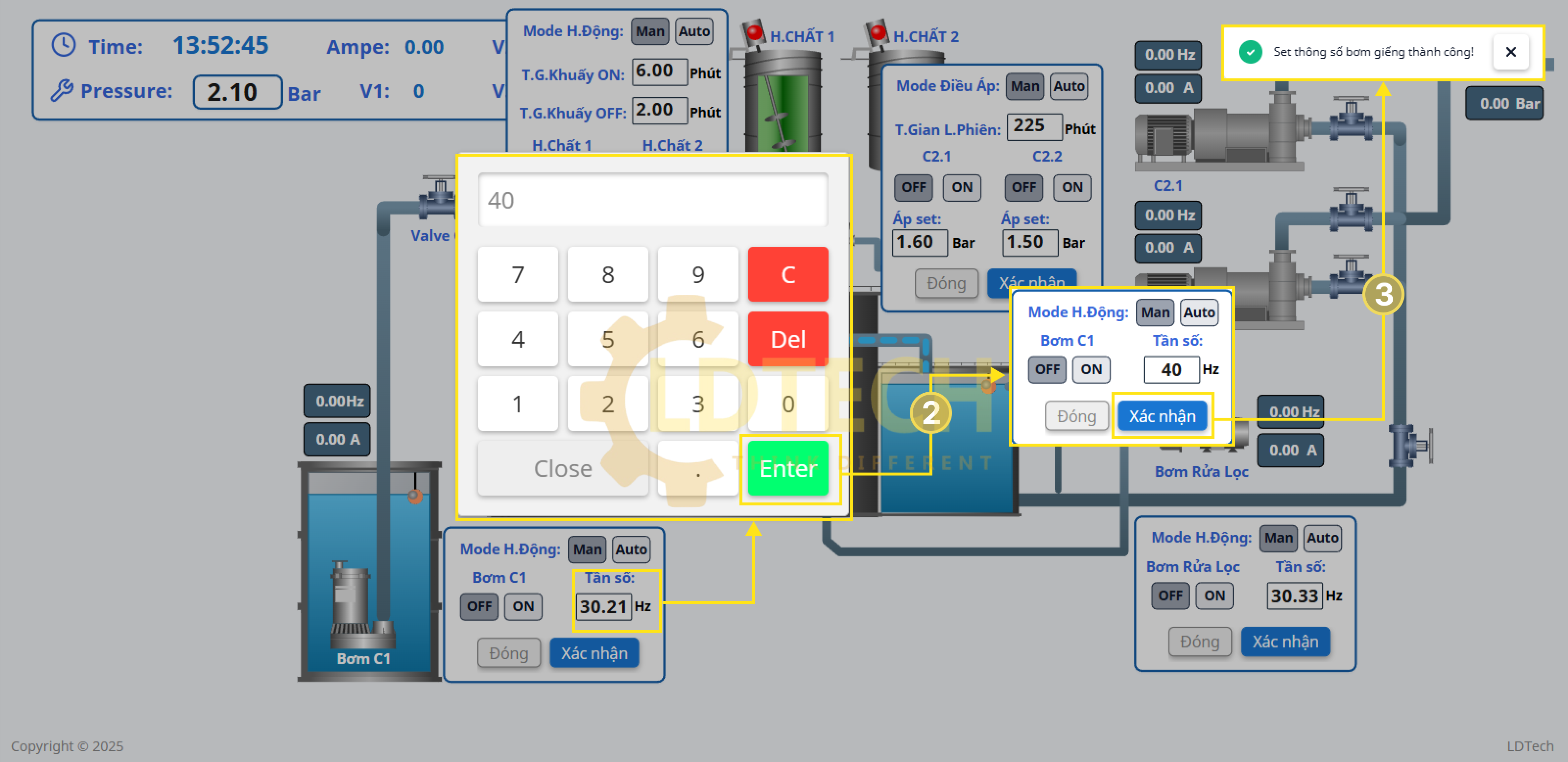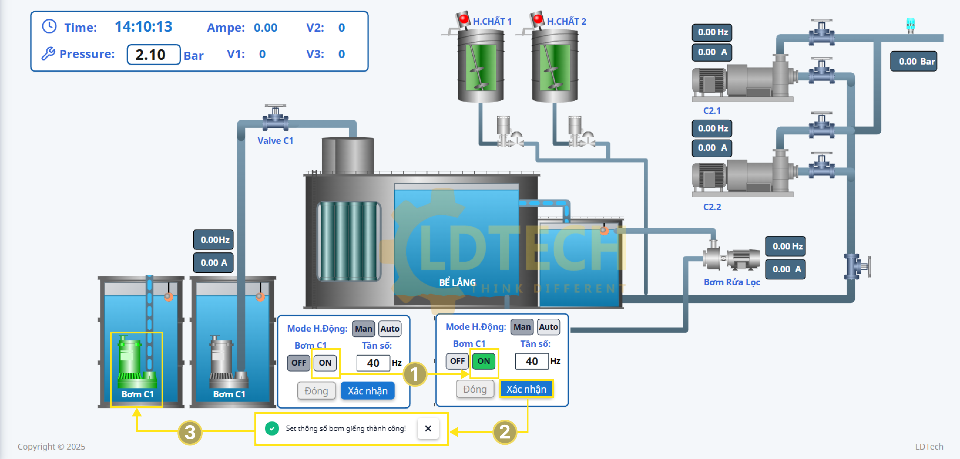 Hình 3. Popup & set giá trị vận hành cho máy bơm